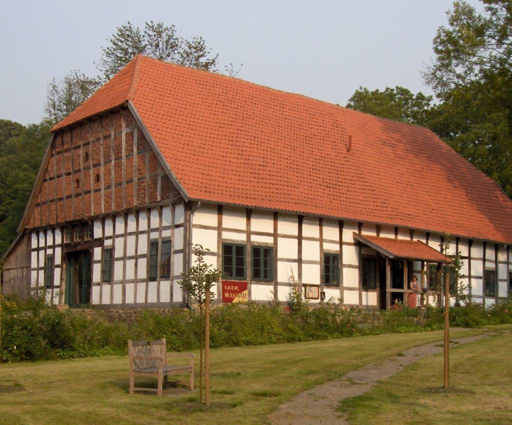 beiden Wohnhäusern als Werkstatt und Lager für die Zimmerei der einen Familie gebraucht wurde, war das der Startpunkt für ein neues, größeres Projekt. Der Verein ‚Kulturwerkstatt Hiddenhausen‘ wurde gegründet und in Kooperation mit der Gemeinde und mithilfe von Fördergeldern und viel Eigeninitiative wurde im Laufe von 2 Jahren die Kornscheune auf ‚Gut Hiddenhausen‘ zu einem stilvollen, vielseitig nutzbaren Standort ausgebaut. Breitgefächerte Kurse auf handwerklich-künstlerischem Gebiet für alle Altersgruppen und ein Kleinkunstprogramm fanden dort über all die Jahre statt und wurden sowohl individuell gebucht als auch von unterschiedlichen Gruppen wahrgenommen. So hat sich die ‚Kulturwerkstatt‘ einen festen Platz im kulturellen Leben der Gemeinde geschaffen. Nun werden hier wieder ab Februar 2026 übergangsweise Angebote der Kulturwerkstatt stattfinden.