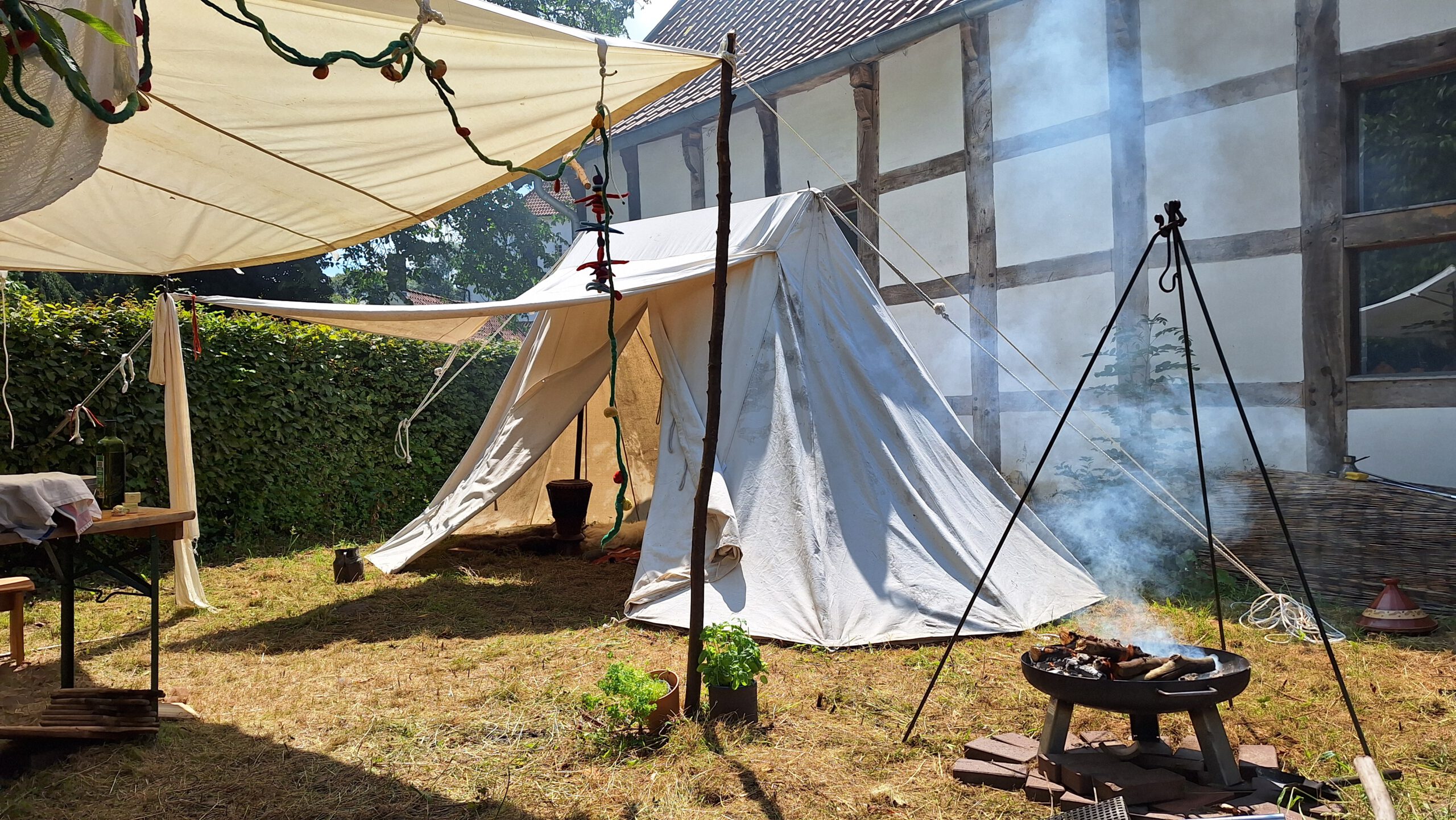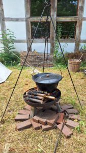 Das Mittagessen kochst Du gemeinsam mit den anderen auf dem offenen Feuer.